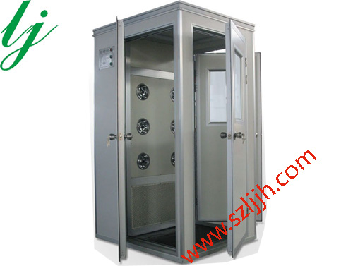 風淋室是人員進出潔凈室所必須的通道,并同時起到閘室密閉潔凈室的作用,是進行人員凈化和防止室外空氣污染潔凈區的有效設備。 為了減少由于人員進出所帶來的大量塵埃粒子,經高效過濾器過濾后的潔凈氣流由可旋轉噴嘴從各個方向噴射至人身上,有效而迅速清除塵埃粒子,清除后的塵埃粒子再由初、高效過濾器過濾后重新循環到風淋區域內